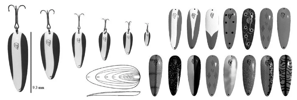 The earliest example of design families I became aware of is the managed configuration of the Original Dardevle® Spoons product line from Eppinger. The spoons come in a set number of standardized sizes based on a lure profile originally established in 1906 by the firm’s founder, Lou Eppinger. Lures are marketed in a variety of finishes, patterns, and pattern color combinations, including the option for consumers to customize some aspects of the design.