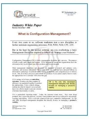This CMstat industry white paper looks at the importance of configuration management as both a management discipline and process foundation to maintain a competitive market standing for a company’s products.