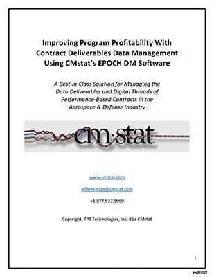 This CMstat white paper describes how defense contractors can improve the performance and profitability of their programs and projects through the use of Contract Deliverables Data Management solutions like EPOCH DM.