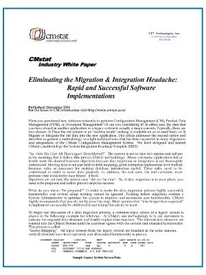 This CMstat white paper addresses how to eliminate legacy data migration and process integration headaches when implementing configuration management and product data management software solutions.