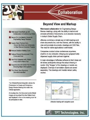 This CMstat product data sheet on the eReview collaboration tool overviews how documents and drawings can be shared, reviewed, and marked-up in live work sessions over the Internet.