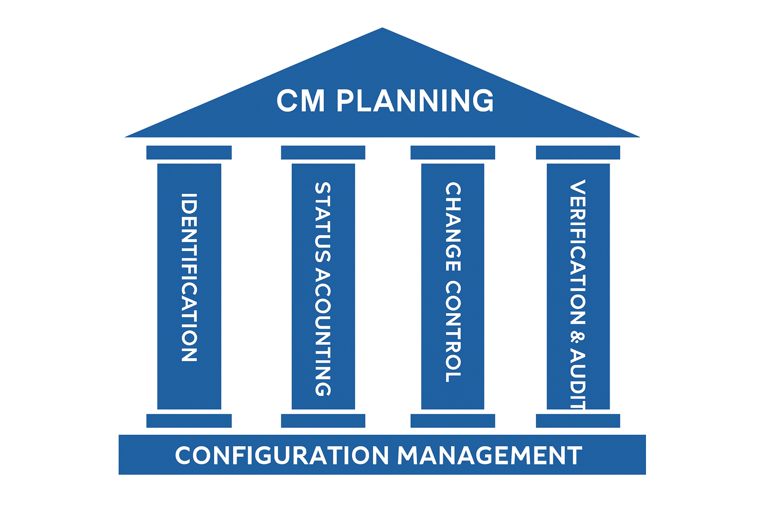 All Configuration Management software solutions must support the five foundational elements of CM. These are: configuration planning, configuration identification, configuration control, configuration status accounting, and configuration traceability and audits.